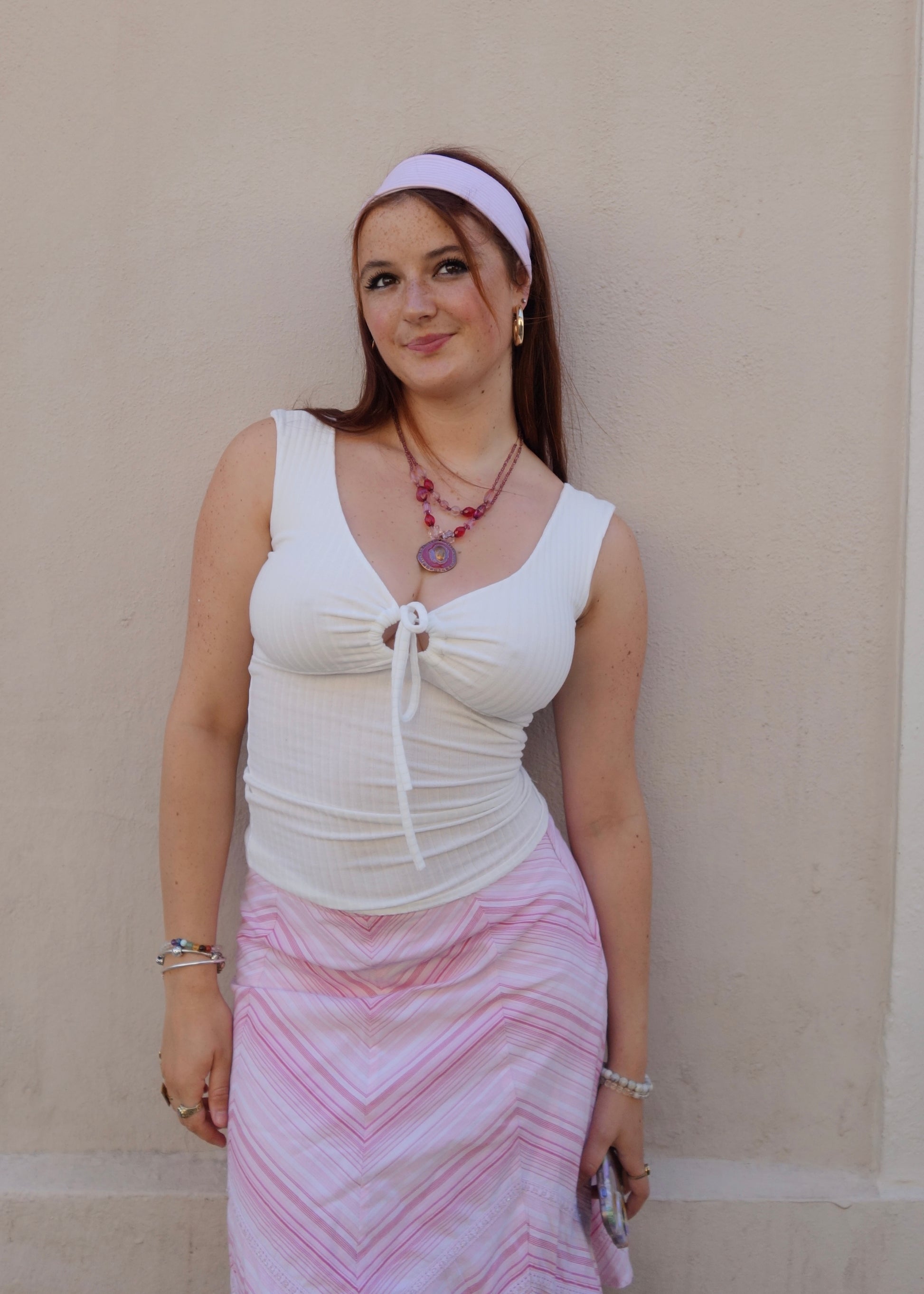 A strappy cami top featuring a tie up front. Made from the softest stretch jersey.